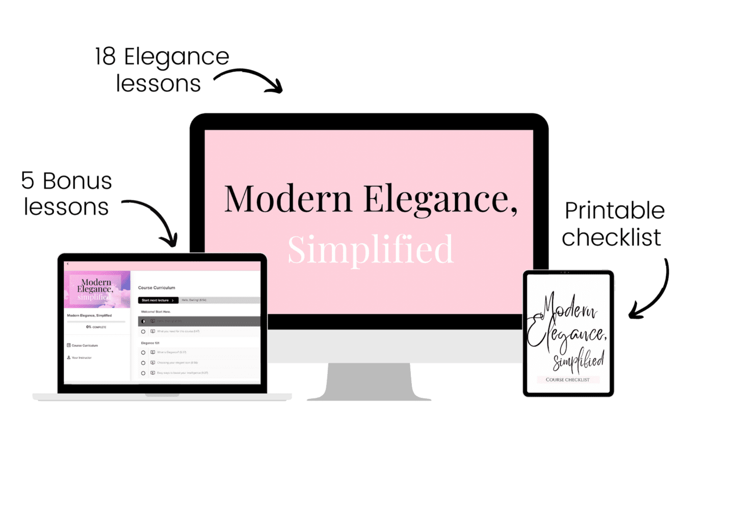If you loved these tips and plan on applying them in your life, you would love my signature course, Modern Elegance, Simplified. This online course will help you go from every day woman to classy bombshell next door!